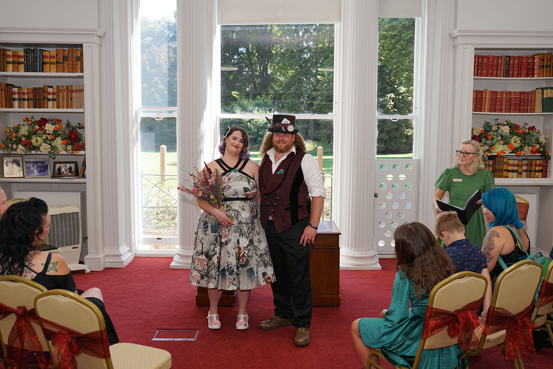 As you can see, there are two very different, but equally beautiful options for your ceremony room. The library gives a cosy and colourful feel, with great views of the gardens to steady any nerves! The Wyndham room has grand pillars and a stunning mirror, giving a more classic feel, but the blinds are closed before the brides arrival, so you don't catch an accidental glimpse!