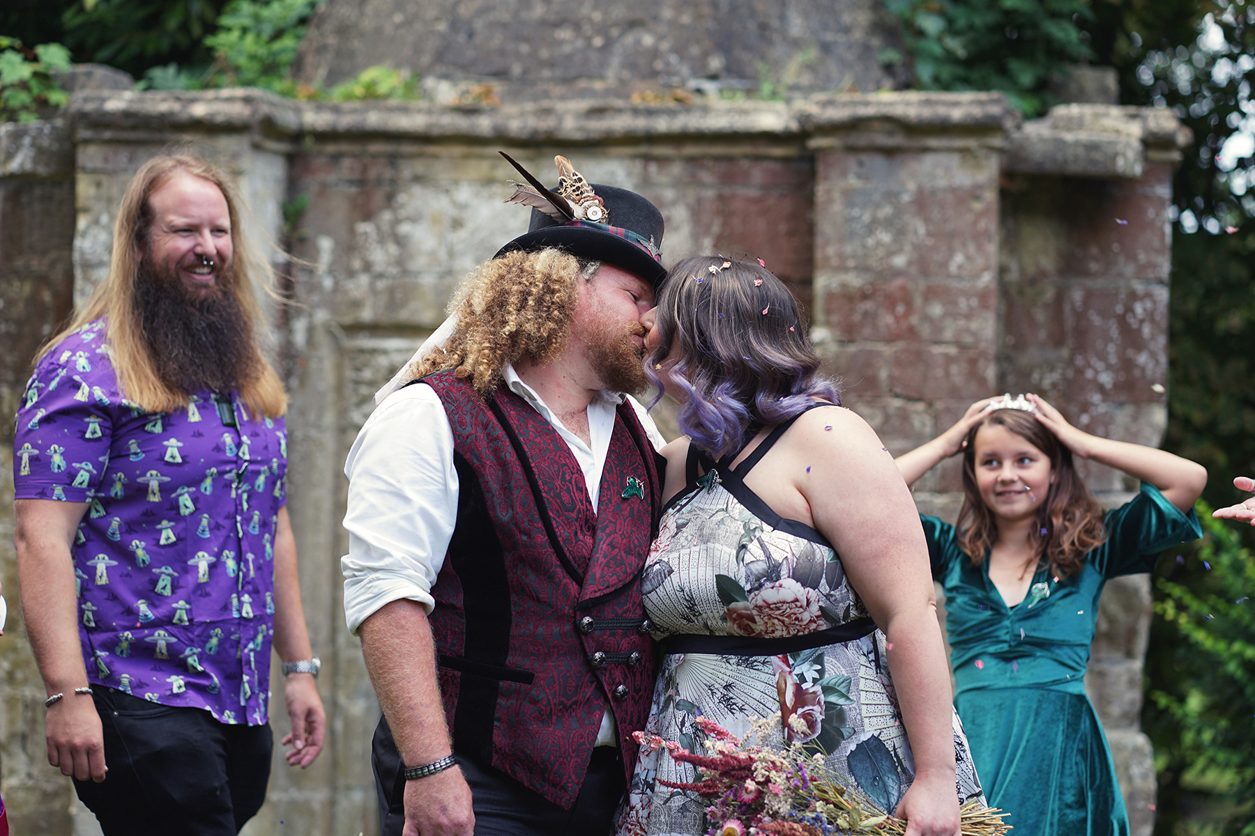 After the ceremony I tend to take the couple for a few photos together around the front of the building, and to the beautiful side garden for romantic couple shots. Confetti is usually thrown in the beautiful green area or in front of the small stone arched building, and for those wanting to capture some more formal group shots, we can either use the impressive front of the building, or the gardens for couples wishing to be more discrete.